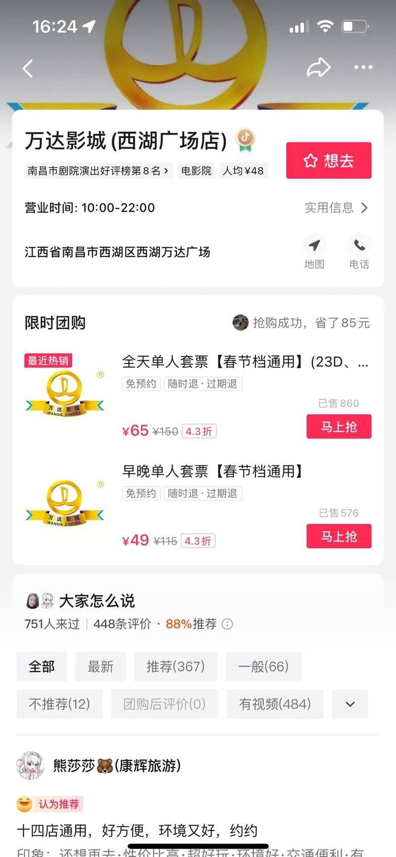 南昌武商mall电影院开业了吗?